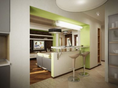 Ответ: Лучше всего подходят современные стили – минимализм, хай-тек, скандинавский, лофт, так как они предполагают открытые пространства и функциональность.